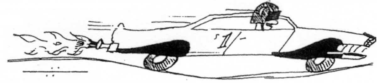 “I’m Frank Fartsoff,” yelled Tan happily “Grrrttt…” then he saw his frowning mother and reddened. “Don’t tell Nyyl will you?! It’s just that whenever he draws Frank’s old car on the board, blowing great puffs from the exhaust…” Mother’s eyebrows arched as she turned to continue dinner, from where she could still hear the drifts of playful banter coming from ‘the track’.