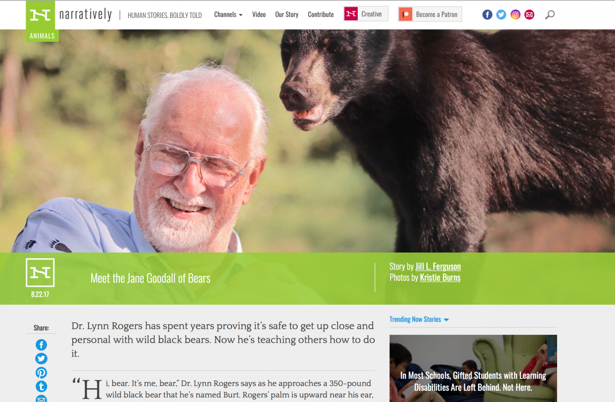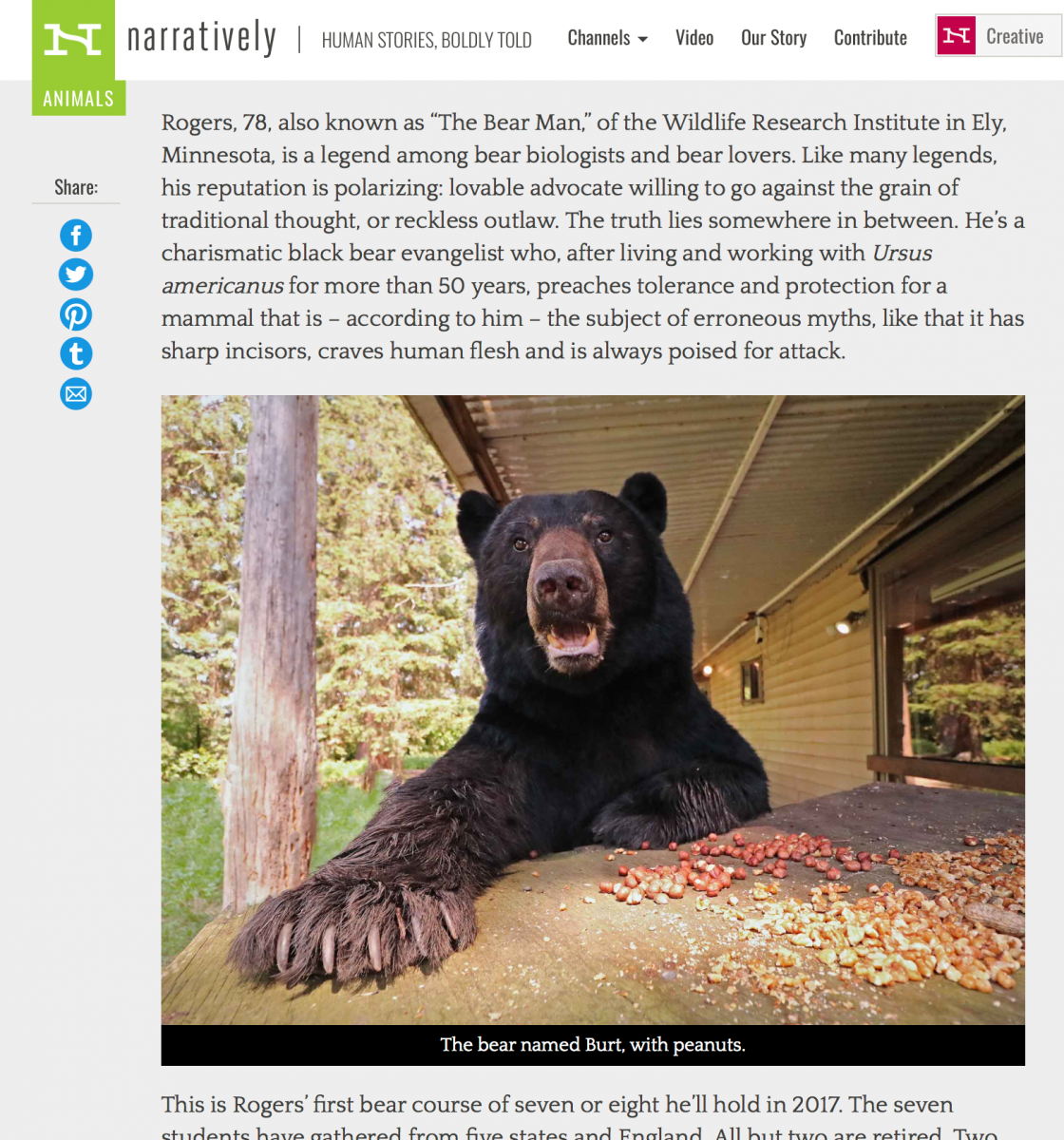 I recently spent five days with a select group of people in Minnesota with Lynn Rodgers and The North American Bear Center. During this time our group experienced many close encounters with bears. My photos from the experience were later used in an article with Narratively Magazine. You can read the full article HERE or view the excerpts below. Jill L. Ferguson, who wrote the article, did a brilliant job of capturing the experience!