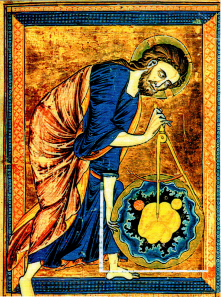 How wonderful it is for a Spiritual Scientist to find such synchronicity as in the corresponding nine layers of the earth and the human head. How positively blessed when these revelations are further confirmed by ancient spiritual tradition. The painting below, a mide-13th Century French miniature, depicts the Cosmic Architect creating the world in nine clearly defined envelopes, from the ionosphere on the outside rim to uranium in the center: “From the golden core al living Beings are created, each according to its nature and size.” This amazing correspondence yet again demonstrates Rudolf Steiner’s more-than-metaphor teaching that the earth is a great head, the head a tiny earth. Here Alchymical Science, Natural Science and Spiritual Science form a trinity of true wisdom.