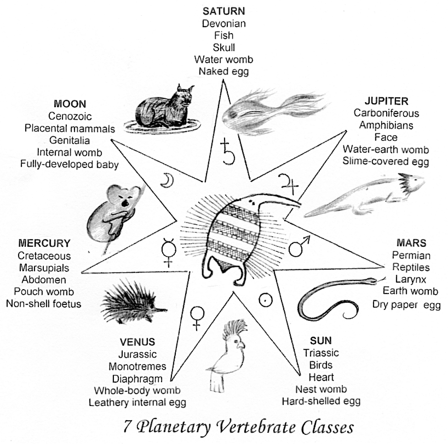 The Seven Vertebrates in their long evolutionary path provided a formative foreshadowing of the seven planetary aspects of man.