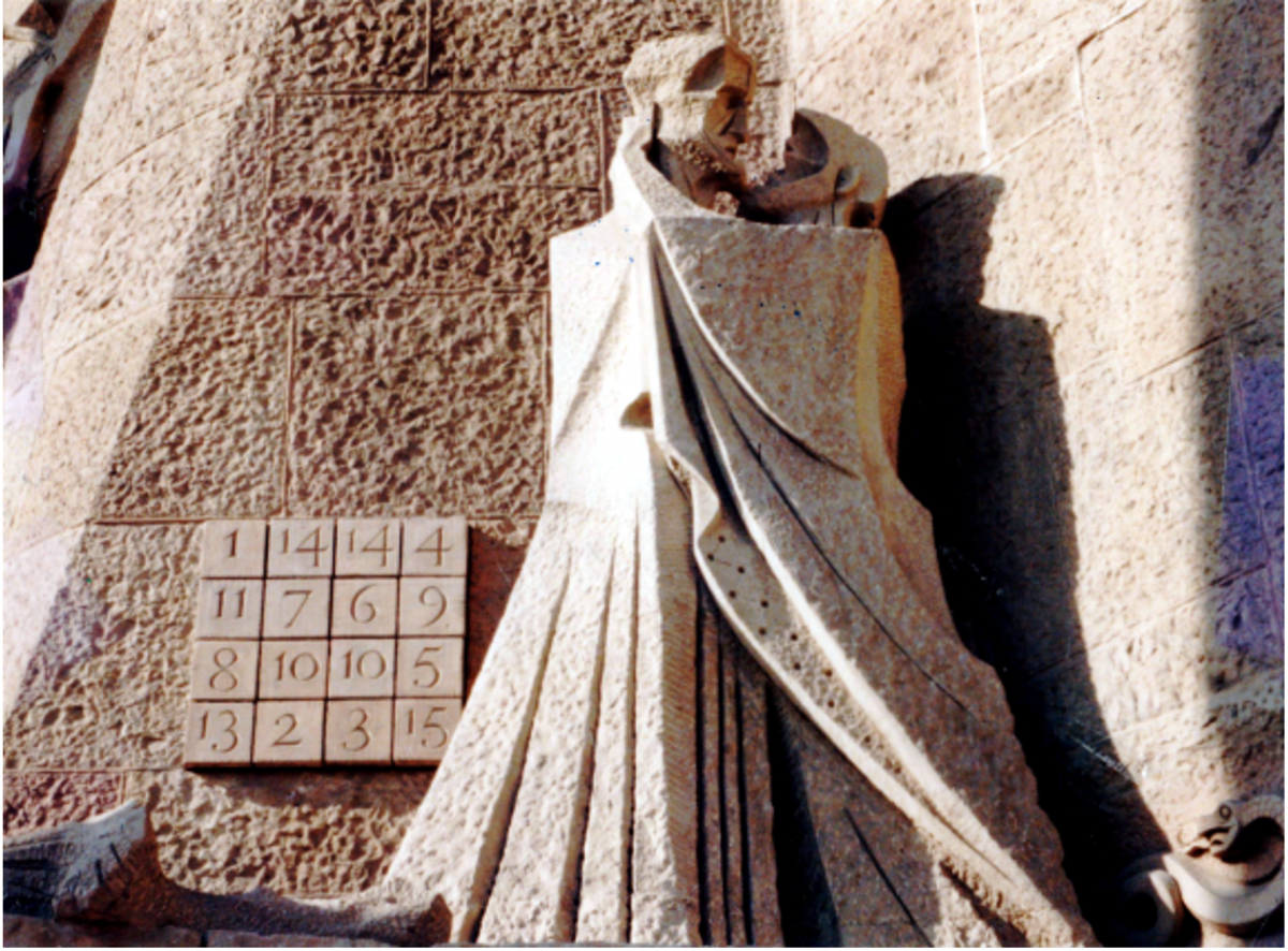The Spirit moves in both mysterious and numerical ways; above, a remarkable ‘magic square’ hidden discreetly behind the powerfully moving sculpture of Judas’ kiss of betrayal on the west (ego) entrance to Antonio Gaudi’s Sagrada Familia cathedral in Barcelona. Give students the task to see how many additions – vertical, horizontal, diagonal, corners, etc., etc. – of 33 they can find. Of course this is the number of the years this ‘Ego God’ spent on earth. This is not only fun, but spiritually enlightening.