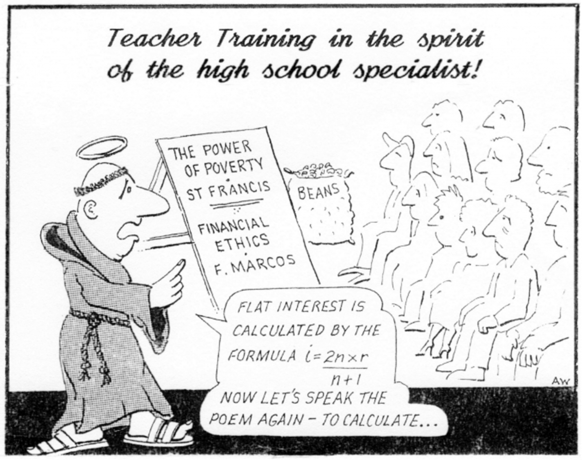 A convenient and workable program might be 12-fold (a good number of study topics for any main lesson); from a plethora of finance areas, we might select one of each of the following to be studied each day: Banking; Tax; Investment; Budgeting; Asset/Liabilities; Home Buying; Borrowing; Fraud; Income; Welfare; Buying/Selling; The Future.